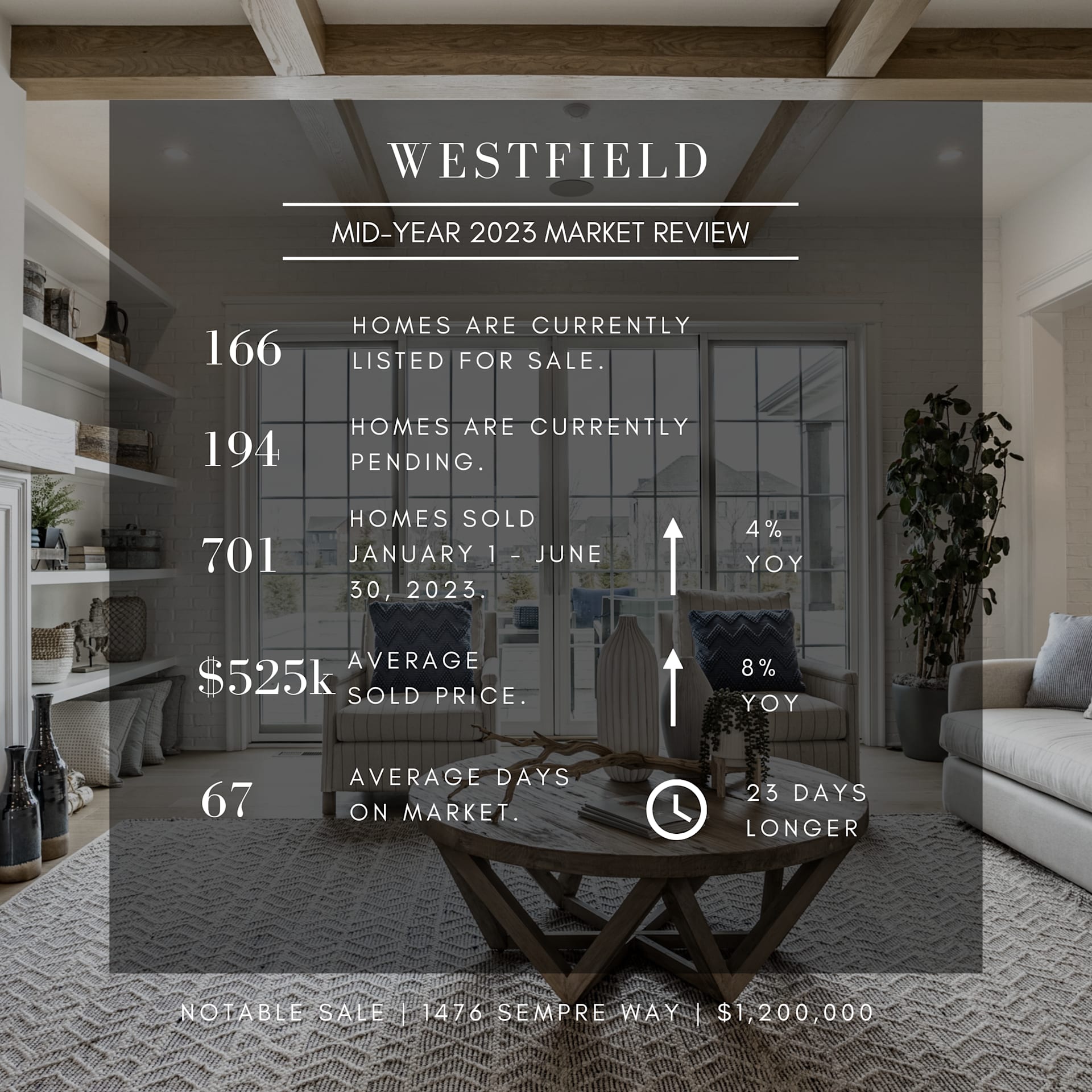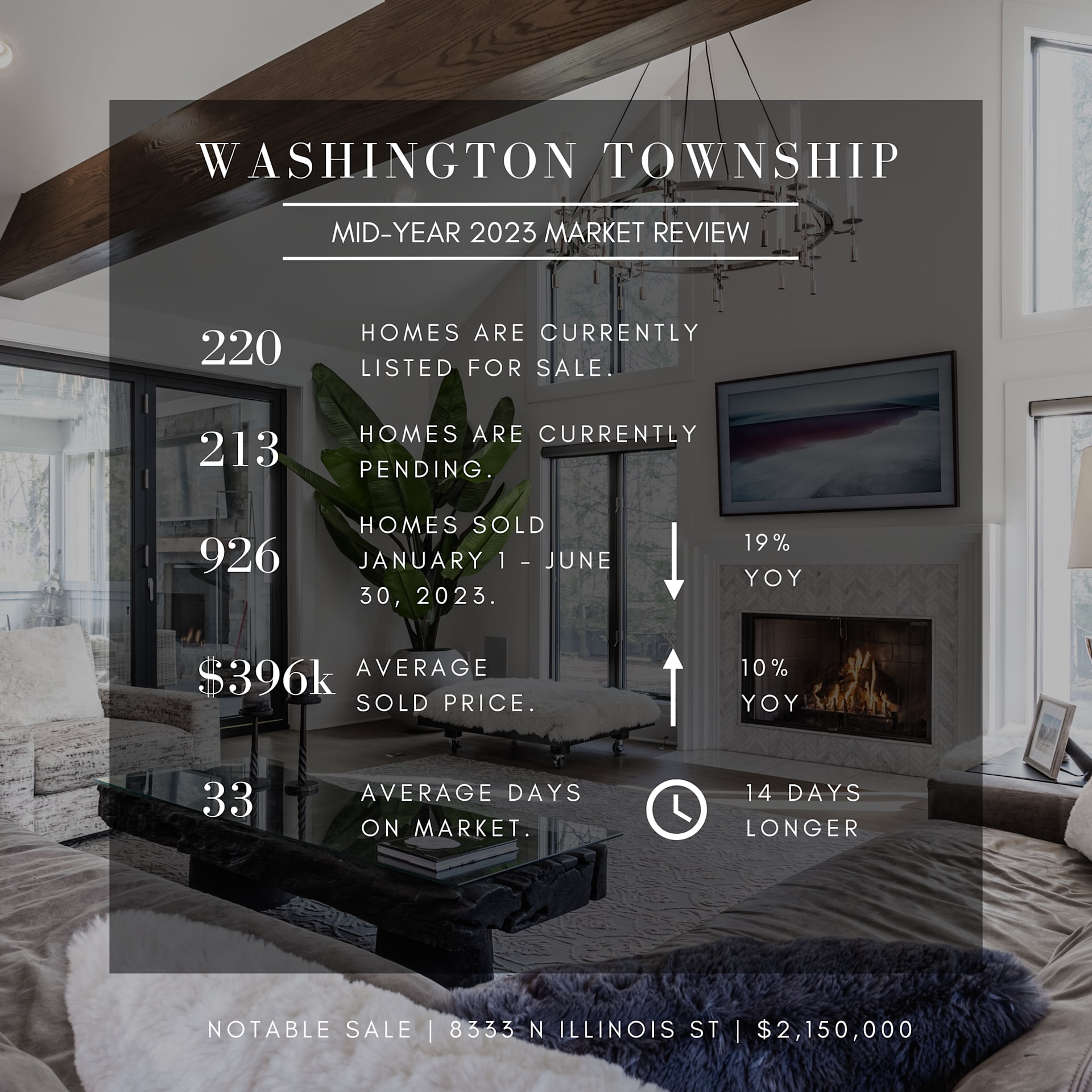 As we recently passed the halfway mark for 2023, we decided to take a quick look at the market for the year so far. In reviewing several specific communities in Central Indiana, it was clear the market is seeing a downturn in transactions in nearly every market. The outliers included the luxury market (homes priced above $1 million) in Washington Township, Chatham Hills, and Westfield as a whole. We believe different factors impacted the growth of each of these areas. In Westfield and Chatham Hills, the desire for new construction and growth in that submarket are likely impacting the increased transactions there. The luxury market is more difficult to predict, but possibly those buyers are less impacted by interest rates and other market conditions affecting the rest of the market.