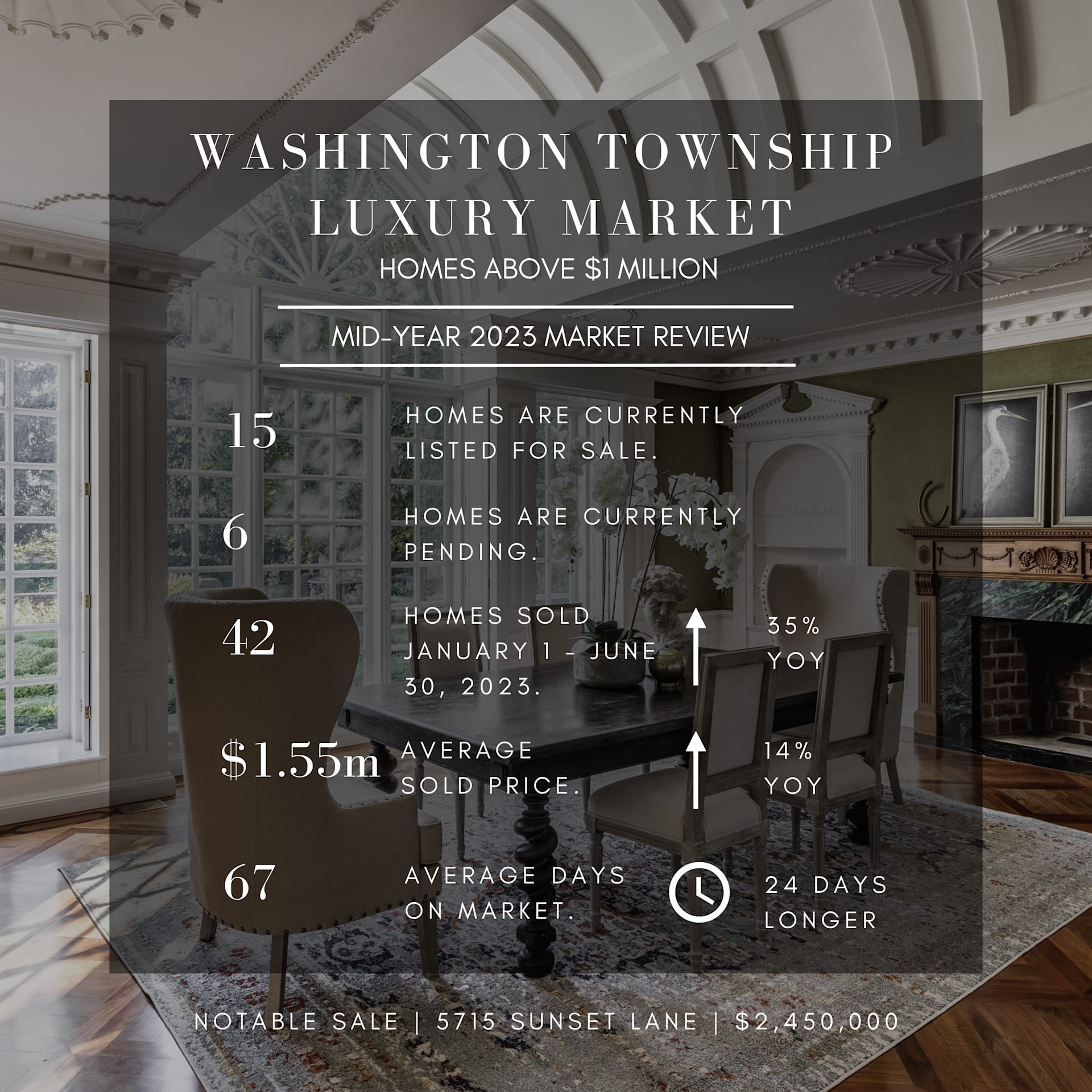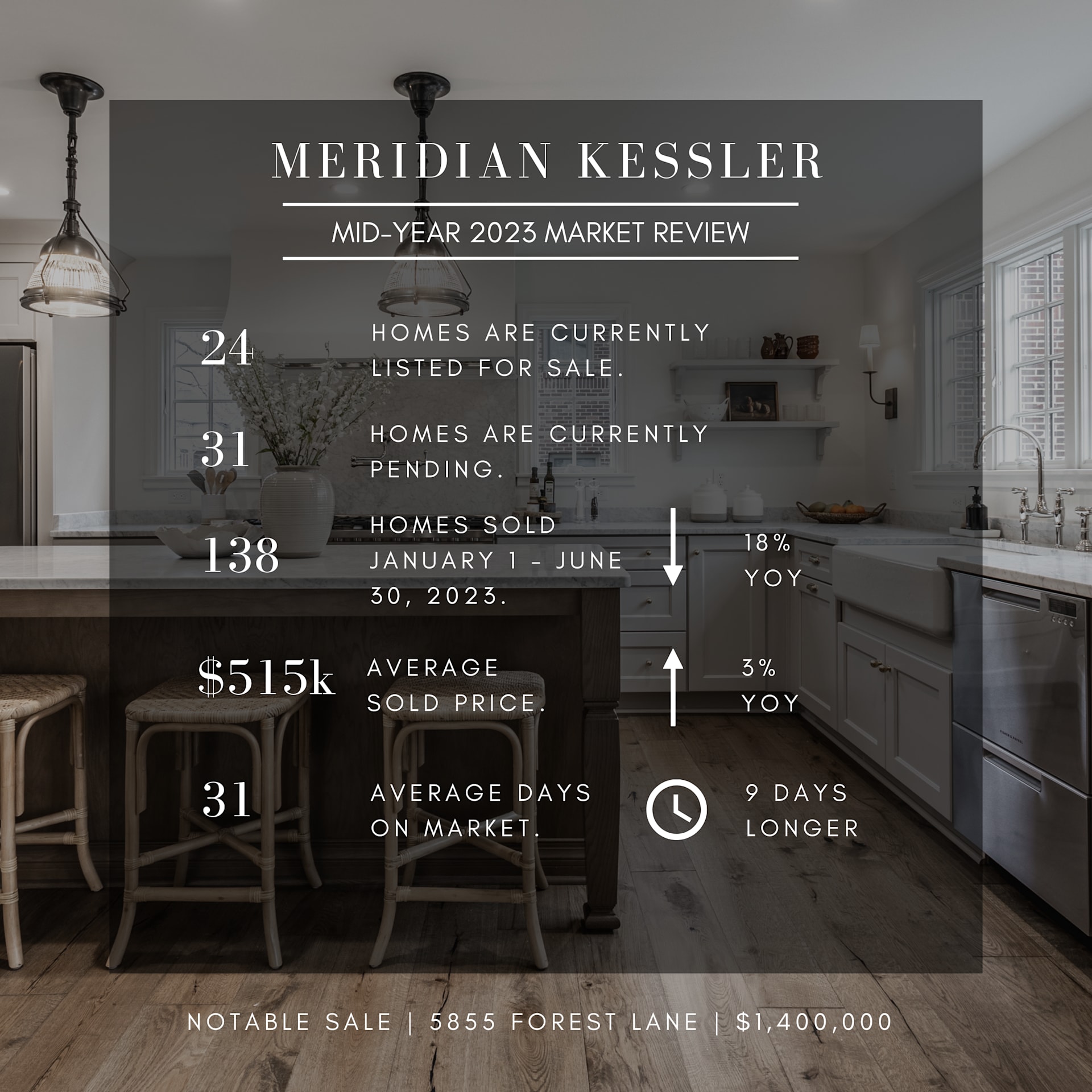 Average sales price continues to increase though not at the same rate as it did in 2021 and 2022. Additionally, a home’s time on the market continues to be longer than in years past, making the home-buying process far less stressful.